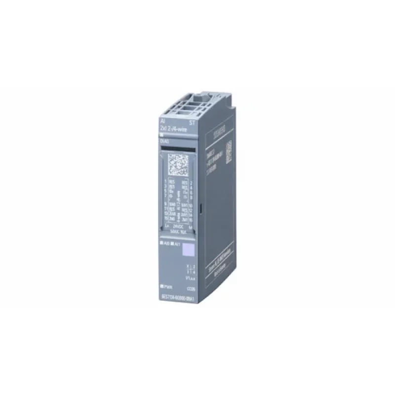 The ET 200SP AI 2xI 2/4-wire module supports two channels for 2-wire or 4-wire analog signals, allowing accurate measurement of current (4–20 mA) or voltage (0–10 V) inputs. Its compact design integrates seamlessly with the Siemens ET 200SP distributed I/O system. This enables efficient installation in space-constrained control panels while maintaining high-speed communication with Siemens S7-1200 and S7-1500 PLCs.