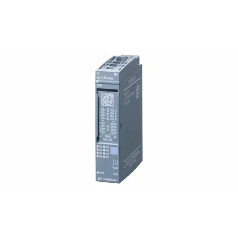 The ET 200SP AI 8 I 2/4-Wire BA module has 8 channels of support for 2-wire and 4-wire analog signals that can be used to measure current (4–20 mA) and voltage (0–10 V) inputs from any type of sensor and field device. Its modular design with a compact footprint makes it highly suitable for direct insertion into the ET 200SP distributed I/O system, allowing high-speed communications with Siemens S7-1200 and S7-1500 PLCs while conserving control panel space.