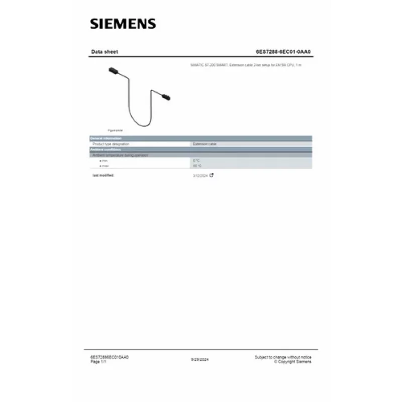 Maan Electro Controls is a reliable supplier of the Simatic S7-200 SMART Extension Cable 2-Tier Setup for EM SR CPU (6ES72886EC010AA0). This high-quality accessory improves the flexibility and connectivity of Siemens S7-200 SMART automation systems. The extension cable enables a two-tier setup, allowing easy expansion of the S7-200 SMART modules, including expansion modules (EM) and signal processing units (SR CPU), without affecting system performance or reliability.