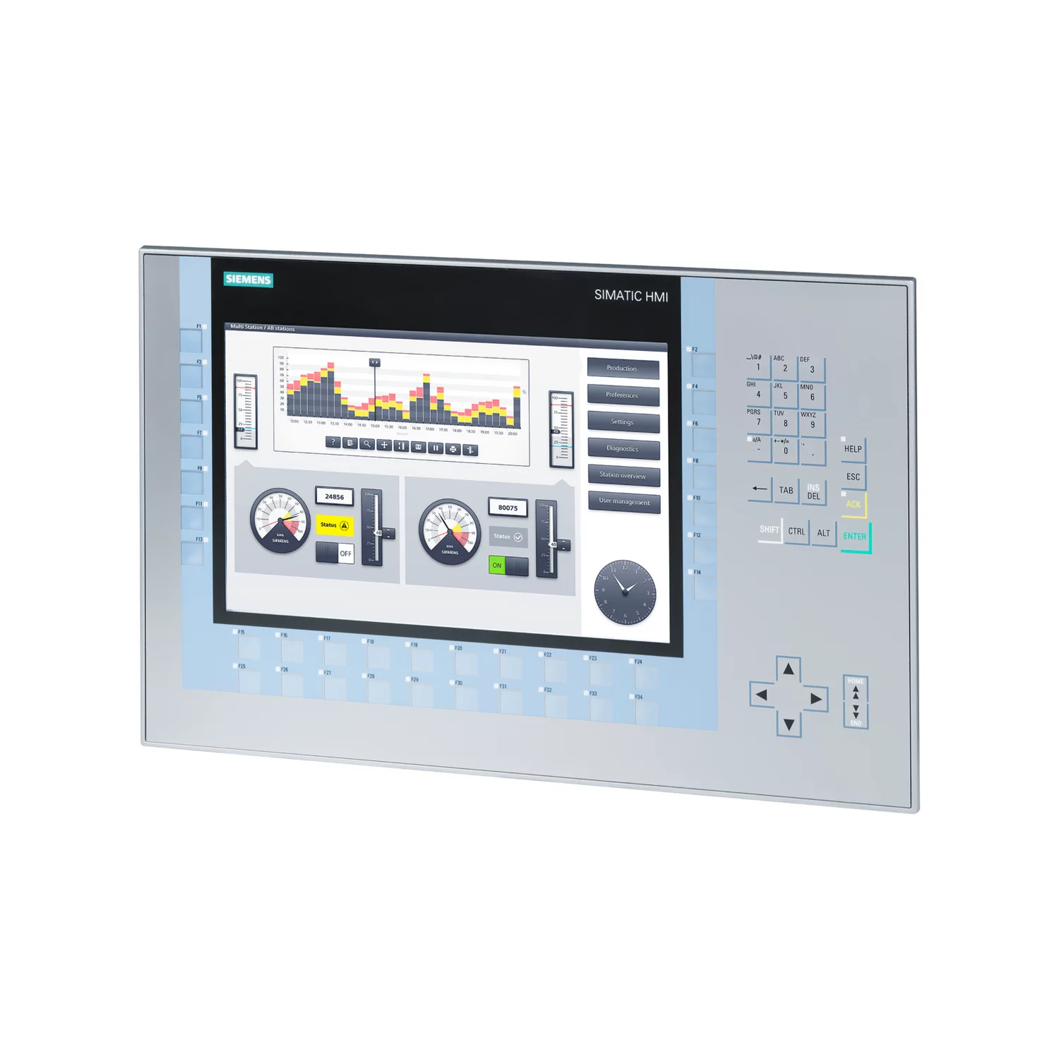 The KP Comfort HMI series from Siemens combines both touch screen and keypad operation, making it ideal for industrial environments where durability and operator convenience are essential.